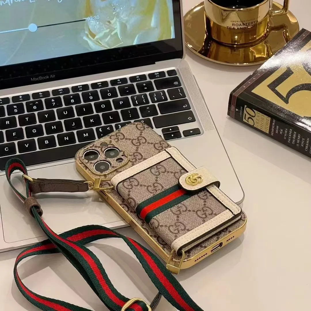 Simplify your essentials with the iPhone Case with Wallet and Shoulder Strap. Featuring a stylish wallet and a removable shoulder strap, this versatile design is crafted from luxurious leather that not only elevates the look, but also features a durable finish that ensures a refined touch and lasting shine.