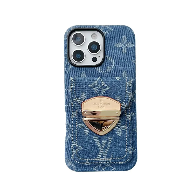 Louis Vuitton Fashion denim canvas iPhone Wallet Case With Crossbody Strap